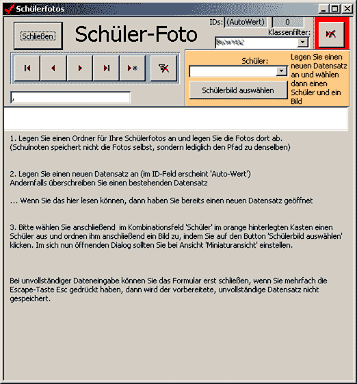 die Fotodatei abgelegt werden soll. Dann öffnen Sie das Foto-Formular und stellen im Schüler-Kombinationsfeld des