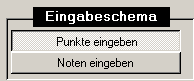 Hier können Sie das Eingabeschema bestimmen. Wenn Sie Punkte eingeben wollen, aus denen Schulnoten2002 dann je einen Notenvorschlag berechnet, dann muss "Punkte eingeben" aktiviert sein (Voreinstellung). Wenn Sie mit dem Cursor auf dem Schüler sind und die Tabulator-Taste betätigen, wird das Punkte-Feld das nächste aktive Feld.